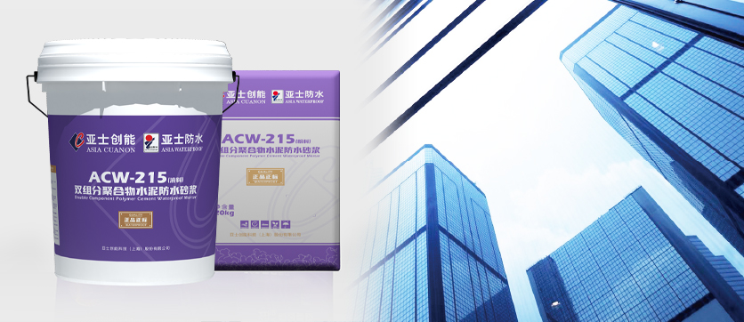 ACW-215 双组分聚合物水泥防水砂浆是以优质丙烯酸酯乳液和多种添加剂组成的有机液料,再以特种水泥及多种填充料组成的无机粉料,经一定比例配制成的双组分聚合物改性水泥基刚性防水涂层材料。