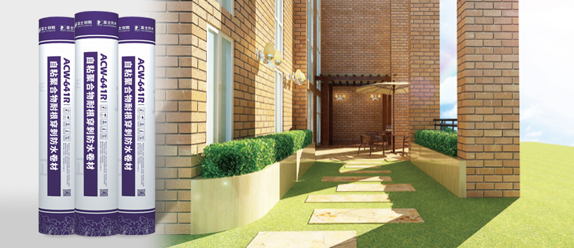 ACW-641R 自粘聚合物耐根穿刺防水卷材是以石油沥青为基料,以 SBS、SBR、增粘树脂为改性剂,并添加化学阻根剂,聚酯胎基布为加强层,上表面覆聚乙烯膜,下表面覆涂硅隔离膜制成卷曲的片状防水材料。